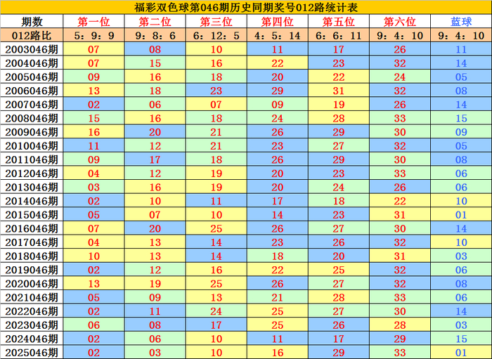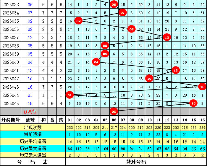 蓝球分析:第046期历史同时蓝球号码012路比开出9:4:10,其中1路蓝球开出较少,本期瞻望1路蓝球轮空,看好蓝球06。